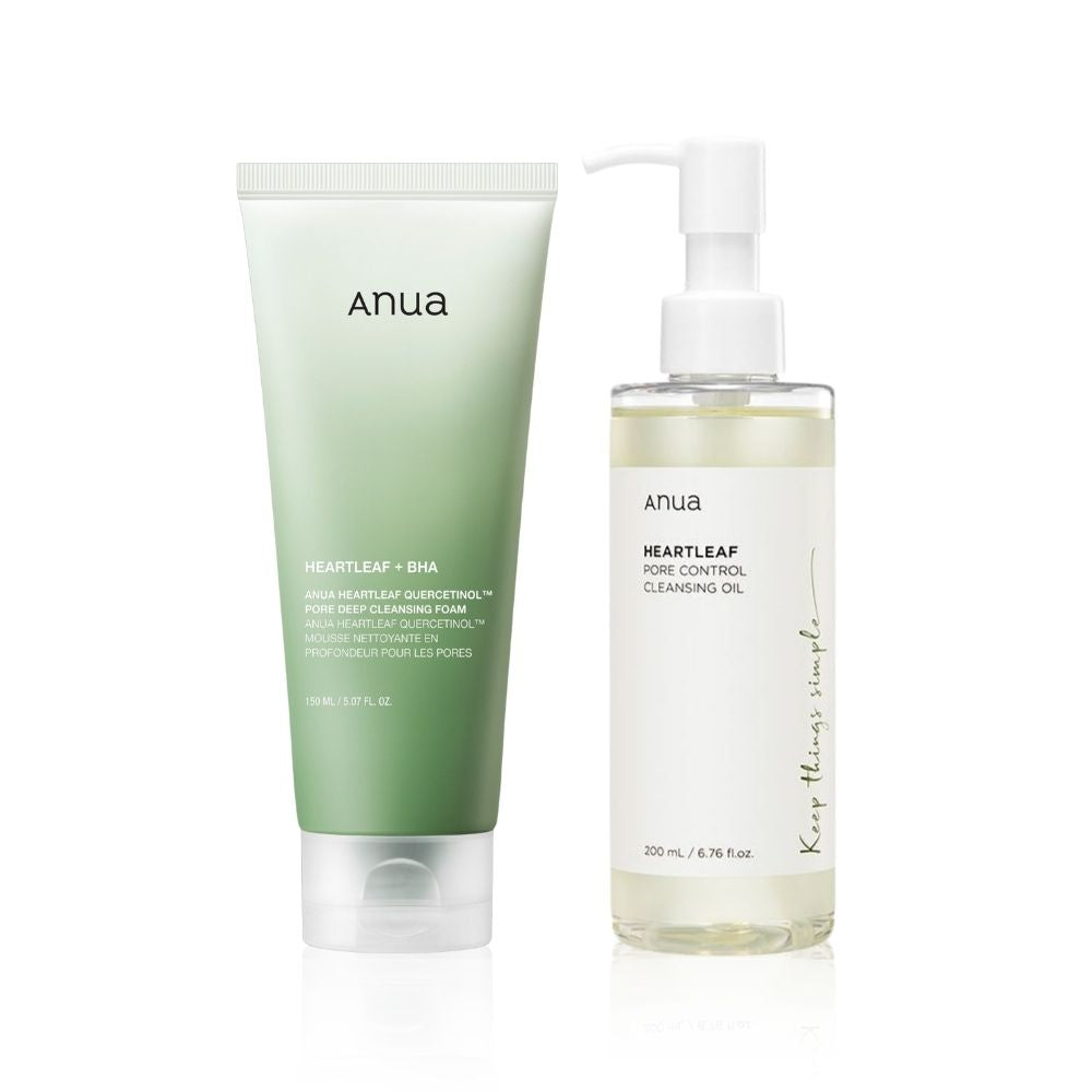 The ANUA Double Cleansing Duo Set combines the skin-purifying power of the Heartleaf Pore Control Cleansing Oil with the refreshing, deep-cleansing benefits of the Heartleaf Quercetinol Pore Deep Cleansing Foam. Designed to work in harmony, this two-step routine removes sunscreen, excess oil, pollutants, and impurities while preserving your skin’s natural barrier. Together, they create the foundation for a clean, radiant, and balanced complexion.