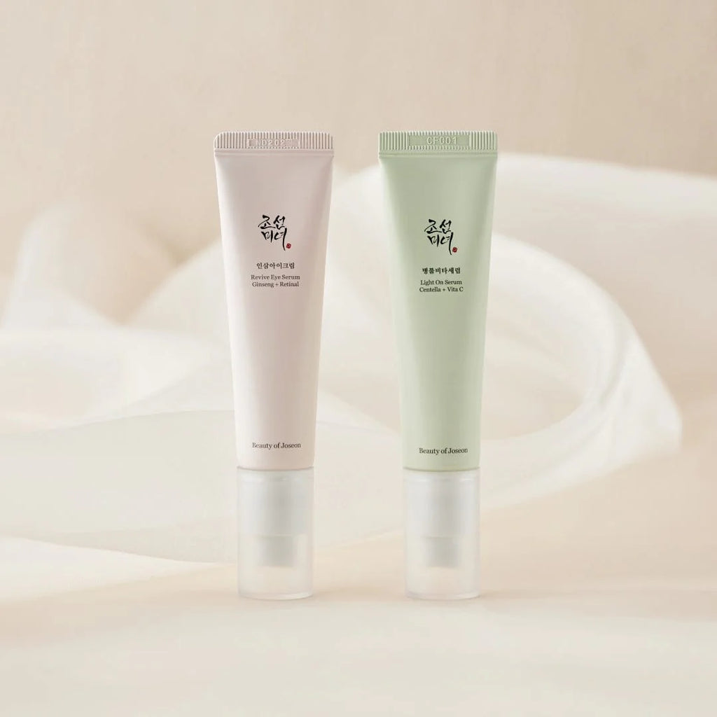 Elevate your daily skincare ritual with Beauty of Joseon’s Bright & Firming Duo, a synergistic combination of two potent serums designed to illuminate, firm, and rejuvenate the skin. This carefully formulated set includes the Revive Eye Serum and the Light On Serum, offering comprehensive care for both the delicate eye area and overall complexion. With consistent use, this duo helps diminish the signs of aging, evens out skin tone, and leaves the skin looking radiant and youthful.
